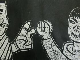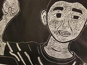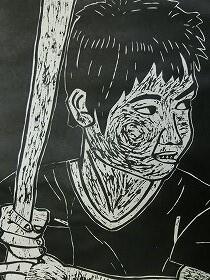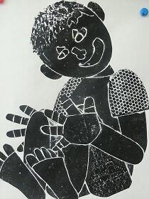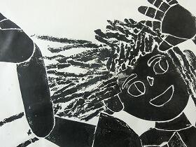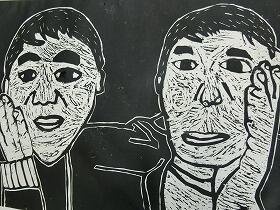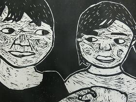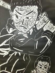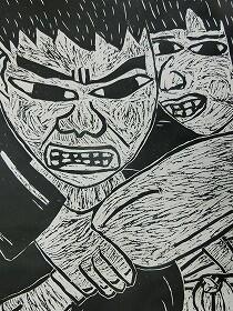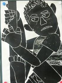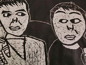 昨日の1・3年生に続き、本日は、4・5・6年生の版画の作品を紹介します。昨日の紙版画から全て彫刻刀を使った木版画になっていました。上級生らしく顔の表情や動きがとても上手に表現されていると思います。なお今回は、8名分で、題名を十分把握できなかったため、作品のみの紹介とさせてもらいます。ご了承ください。