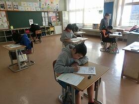 今日2時間目にCRT学力検査の2日目として算数のテストを全学年で実施しました。昨日の国語のテストで、少しお疲れムードの子どもたちでしたが、今日も集中して、真剣な表情で、問題に取り組んでいました。