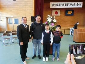 講評でも、町長様より「大・大・大好きな西門川のことがしっかり伝わってきました。」というお褒めの言葉をいただきました。最後は、お褒めの言葉をいただいた町長様といっしょに記念写真を撮りました。本当によくがんばったと思います。