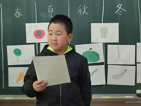 1月の主な行事と変更があり、23日(水)の今日「給食感謝集会」を行いました。集会の前半部分は、給食委員会の子どもたちが中心になり、旬の食材について発表してくれました。途中クイズもあり、楽しみながら食について全校で学ぶことができました。今回の発表にあたって、たくさんの資料が準備されていました。給食委員会のみなさん、ご苦労様でした。