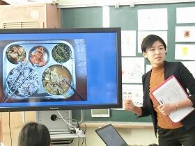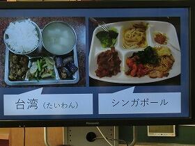 給食の歴史のお話の前に紹介していただいた世界の給食の紹介も印象に残りました。今回は、韓国、シンガポール、台湾、ガーナ等の給食を紹介していただきましたが、それぞれの国の特徴がとてもよく出ていて、おいしそうでした。