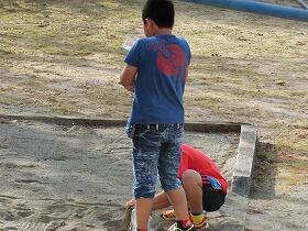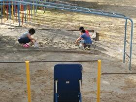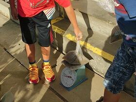 1時間目に外が変に、にぎやかなので、運動場に目を向けてみると3年生が、ビニール袋に砂場の砂を入れていました。何をしているのか尋ねてみると、「算数の勉強で1kgを作ってます。」の返答が。袋を見てみると1回目「明らかにそれは、少ないだろう。」という量をみんな袋に入れていました。いよいよ計量ですが、予想通り100g前後しか砂を入れていませんでした。しかし、その後、何回も試行錯誤を重ねる中で、全員が1kgの量をほぼつかんでいきました。このような学習は、やはり実際に体験しないと身につかないものだと思います。3年生のみなさん、今日は、いい勉強をしましたね。