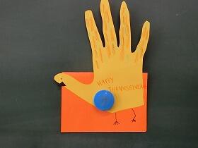 このクイズの後は、アメリカの祝日「感謝祭」にちなんで、手のひらの型を使った七面鳥のカードを作りました。子どもたちの指が丁度、顔や羽になって、とてもかわいいカードが完成していました。今日は、おうちの人たちにそのカードを子どもたちがプレゼントするそうです。アメリカでは、21日(水)が午前中授業で、22日(木)、23日(金)は、祝日で4連休だそうです。日本で言う「ゴールデンウィーク」かな?