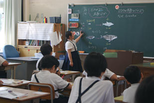 9月10日(水)に4年1組で算数の研究授業がありました。「割合」の学習で、クジラとイルカの成長を比較する問題をみんなで一生懸命を考えました。自分の考えをグループで発表したり、友達と一緒に考えを深め合ったりしました。一人一人が一生懸命考える姿が、大変すばらしかったです。