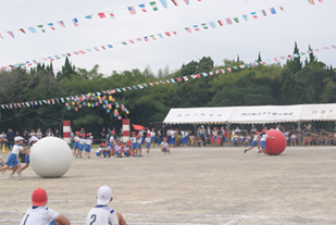 開・閉開式と各学年の主な競技や対団リレー、綱引き、門川音頭を行いました。
