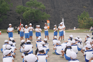 続いて校長先生から、「もう戦いは始まっているのだから、負けないように練習をしっかりがんばりましょう。」とお話がありました。