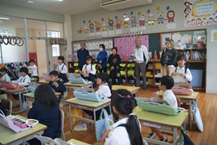 11月19日(水)に5年生「エプロン作り」、6年「ナップザック作り」のミシン支援に入っていただきました。地域のボランティアの7名の方々がお手伝いに来てくださいました。ミシンの扱い方を丁寧に教えていただきながら、一生懸命ミシンで縫う姿が見られました。子ども達は、少しずつ仕上がっていくのをとても喜んでいました。ご多用の中、子どもたちのために支援に来ていただきまして、本当にありがとうございました。