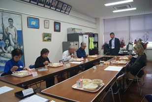 活動後、子ども達は高齢者の方と一緒に給食を食べながら、会話を楽しみました。