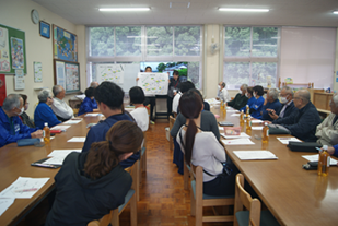 11月5日(水)に五十鈴小校区防災会議を開きました。五十鈴小校区の区長様、民生委員・児童委員様に来ていただきました。11月の「地区別事前学習」と12月の「津波てんでんこ下校時一斉避難訓練」に向けた協議を行いました。本校の計画案をもとに、ご意見をいただいたり実際に当日に立つ場所を決めたりして、大変有意義な会議となりました。