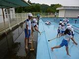 5年生の水泳学習。きれいなフォームで泳げるように、少しでも記録を伸ばせるように、みんなが練習をがんばりました。