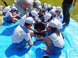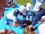田んぼの中で転びそうになった子もいて、最後は洋服や腕が泥だらけ・・・