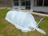 4月26日、総合的な学習の時間で学習する稲の種まきをしました。しばらく水につけた種もみは、独特の香りがしました。手作りのビニルハウスがいも虫みたいで、かわいいでしょう?上手く育つか楽しみですね。