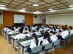 日向警察署の方々に来ていただき、非行防止教室を行いました。インターネットや携帯電話、ゲームを使うときに気をつけることなどを教えていただきました。