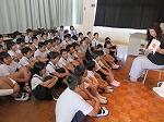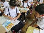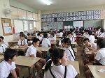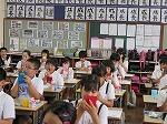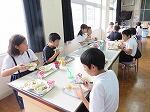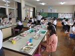 給食は理科室で食べました。西門川小の友達といろいろな話をしながら