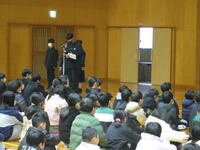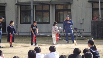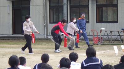1月15日に火災の避難訓練を行いました。家庭科室から出火したという設定で、緊急放送を聞いて運動場へ避難しました。2分23秒で全児童生徒が避難終了。消防署の方から「落ち着いて静かに素早く避難できていました。」とほめていただきました。