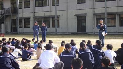 初めは「かっこいい!」「すごい迫力!」という気持ちでしたが、説明を聞くうちに、日本の防衛問題、災害救助、騒音問題などが他人事ではないということや、命を懸けて私たちの生活を守ってくれている仕事をしている人たちがいる、ということなどについて改めて考えるよい機会となりました。