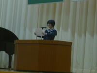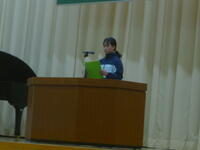 校長先生から、「今年一年でスポーツや文化・芸術部門などたくさんの人たちが表彰を受けました。来年度もたくさん表彰をもらえるように頑張りましょう」とお話がありました。
