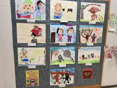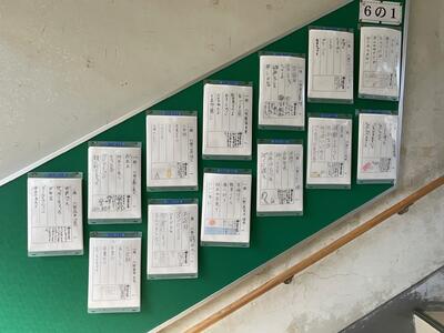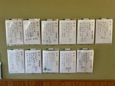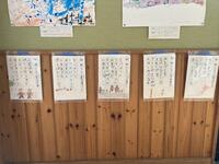 スーパーやまさの「東郷学園・坪谷小 牧水通り」では、児童生徒の作品を展示しています。今回、「牧水の里の作品展」に出品した1・2・4・6年生の作品を展示しました。
