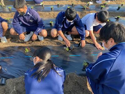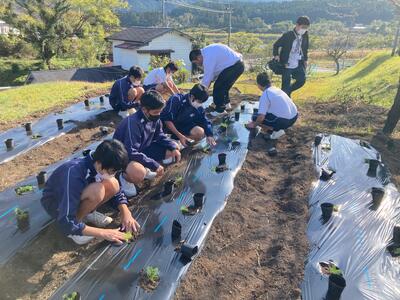8年生が植えたカモミールは、3月から5月にかけて花が咲きます。その花を収穫し、9年生での「カモミール」を使ってドーナツ作りで活用する予定です。東郷まちづくり協議会が推進するカモミールの栽培に、東郷学園の児童生徒も関わりながら、東郷のまちづくりへの理解を深めるとともに、郷土に誇りをもつようになることを願っています。