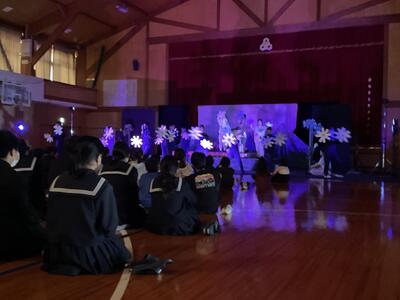 3月8日(金)、山桜ウォーキングの前に「9年生に感謝の気持ちを伝える集会」がありました。この集会は、学園を頼もしくリードしてきた9年生に感謝の気持ちを伝えるためのものです。卒業を来週に控える9年生に、各学年の児童生徒が発表しました。歌やダンス、エールなど、各学年が創意工夫して9年生の卒業をお祝いしました。どの学年も、心温まるすてきな発表でした。