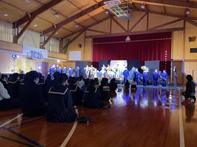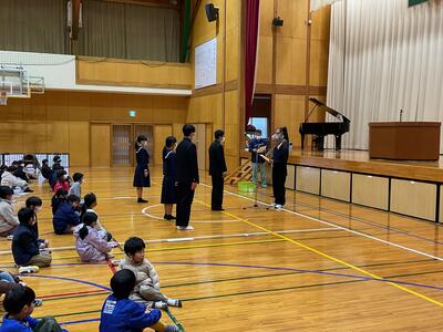校長先生が式辞で、「10名という少ない人数のため、1人1人が大きな役割をもっていましたが、それをしっかりと果たしました。みなさんは変化の激しい社会を生きていきます。そのために、学び続けることが大切です。そして、夢の実現に向けて、それぞれの道を自信をもって歩んでほしいです。」と話されました。