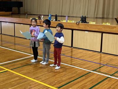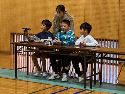 1年生の代表児童は、「漢字を丁寧に書くようになりました。なわとびは、前とびやかけ足とびが上手になりました。2年生ではかけ算を頑張ります。」と発表しました。