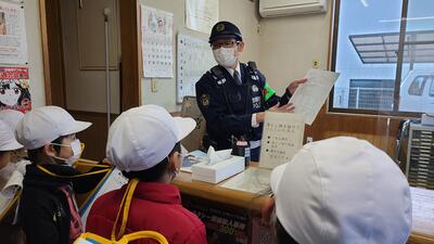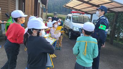 東郷郵便局では、郵便配達をするためのバイクなどを見せていただきました。安全に運転するために、配達前に毎日練習していることも教えてもらいました。バイクにも乗せてもらい、とても喜んでいました