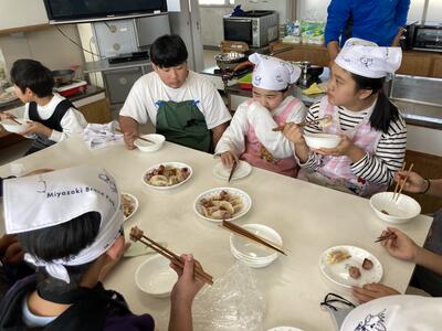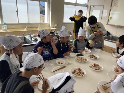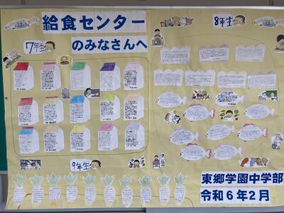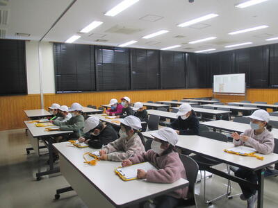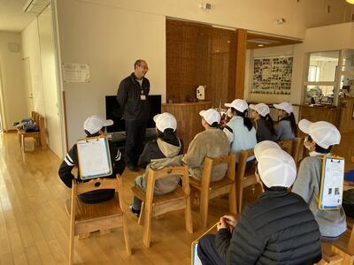 また、日頃から私たちが食べている給食が給食センターでどのように作られているかについての説明がありました。給食を作っていただく給食センターの方々の大変さ、パンや牛乳、学校用務員さんのお仕事など、毎日おいしくいただいている給食にたくさんの方々のご苦労があることを学びました。これからもおいしい給食に感謝して食べます。