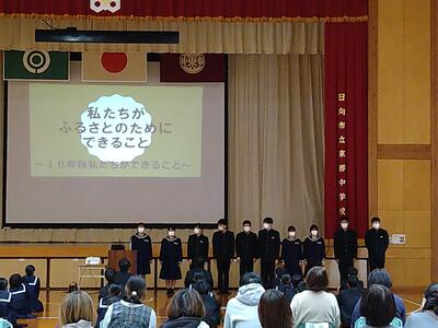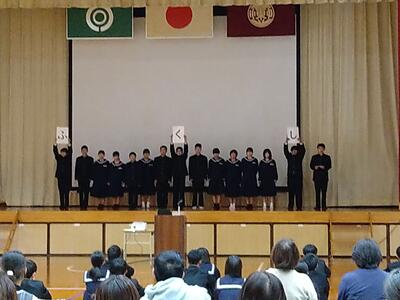 送辞では在校生を代表して8年生の生徒が「先輩方は、多くの場面で学びや喜びを私たちに与えてくださいました。先輩方が築き上げた良き伝統を引き継ぎ、さらにこの東郷学園をよりよきものにしていきます。」と話しました。