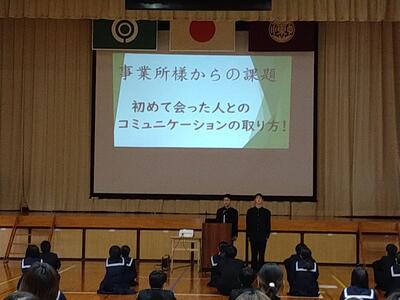 8年生の代表生徒は「課題は整理整頓です。少しずつ身のまわりをきれいにしたいです。成果は自分から進んで学習できるようになったことです。来年は最上級生です。先輩として責任をもてるように頑張ります。」と発表しました。