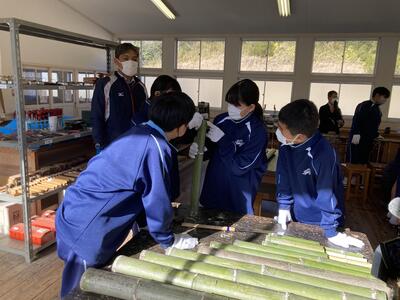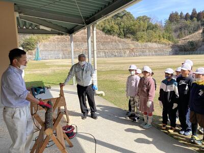 13日(水)に4年生を対象にした木育学習が実施されました。昨年度も実施しましたが、社会科の発展学習としてより深く学んだり、木工製作に楽しんで取り組んだりすることを目的とした学習です。今回も耳川広域森林組合の方にご協力いただきました。