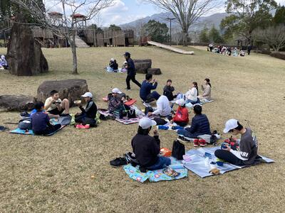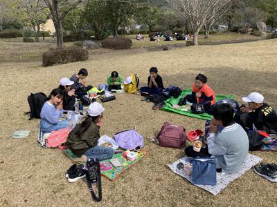 坪谷公園までの道のりには、たくさんのボランティアの方に立っていただき、安全に歩けるようにお世話をしていただきました。おかげさまで、全員元気よく7kmの道のりを踏破することができました。本当にありがとうございます。8時50分に中学部からスタートし、11時20分には最後の1・6年生チームも到着しました。牧水公園に到着してから、13時までお弁当を食べたり、公園で思い切り遊んだりしました。