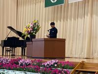 児童生徒を代表して、1・5・7年の児童生徒が1年間頑張ったことや次の学年への抱負を述べました。1年生の児童は、「文章を上手に書けるようになったり、縄跳びが跳べるようになったりしました。2年生になったら、かけ算と縄跳びを頑張りたいです」と発表しました。5年生の児童は、「放送委員会の仕事や、授業中にノートを丁寧に書くことを頑張りました。6年生として下級生のお手本になるように頑張りたいです。」と発表しました。7年生の生徒は、「部活動で頑張ったことは、フォームに気を付けながら打つようにしたことと、審判のやり方を覚えたことです。次の学年では、学習面に力を入れ、計画を立てて取り組みたいです。」と話しました。