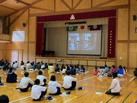 5~9年で構成される後期ブロックの1回目の内容は、日向・東臼杵地区総合体育大会の結果報告でした。テニス部・バトミントン部・野球部の9年生がそれぞれの大会結果を報告しました。締めくくりとして、「スポーツは、自分の力を伸ばしますし、お互いの絆を深めることにもつながります。ぜひ部活動に挑戦してください。」と5・6年生に呼びかけていました。
