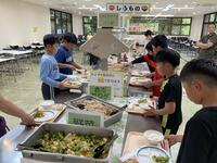 4月13日(木)、1年生にとって初めての給食です。メニューは「ミルクパン・牛乳・スプリングチャウダー・ごぼうサラダ」でした。