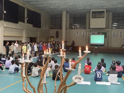 行縢山の頂上に全員で励まし合って登れたこと、キャンドルのつどいで、元気よく素晴らしい発表ができたこと、きまりを守り、進んで奉仕活動に取り組めたこと、友達を思いやり、協力しながら活動できたこと、どれも子どもたちの成長につながったと思います。