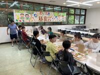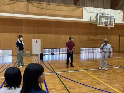 夏祭りに向けて、昼休みの時間に盆踊りの練習をしました。この踊りは、山陰百姓一揆で犠牲にとなった御先祖を偲ぶ踊りです。踊りを通して、この史実を私たちの誇りとし、先祖に感謝する気持ちを育んでもらおうと考えています。今回の練習には、4名の地区の方に来てもらい、足の動かし方を中心に教えてもらいました。小学部の児童も中学部の生徒もたくさん参加し、地区の方も喜んでいました。