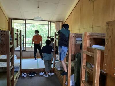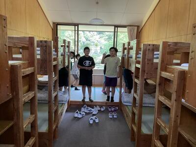 部屋に入り、荷物を置いたらすぐに班長会が開かれました。今日の振り返りを行い、明日に備えます。班長会後は、それぞれしおりに沿って、今日の振り返りも行います。