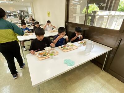 とてもおいしそうに食べていた1年生。これからも何でもおいしく食べてくださいね。