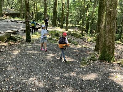 指導員の先生には、2日間に渡ってお世話になりました。特に、昨日の登山は、指導員の先生のおかげで全員登れました。その感謝の気持ちを込めて活動しました。「奉仕」は、自然の家の4つの目標の1つです。この活動を通して、奉仕の大切さを学びました。