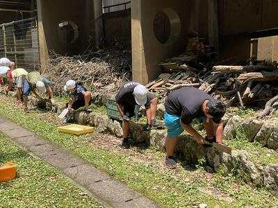 12時30分からは奉仕作業です。東郷連合小学校は、キーホルダーを作るためにふさわしい枝の収集と適当な大きさへのカットでした。