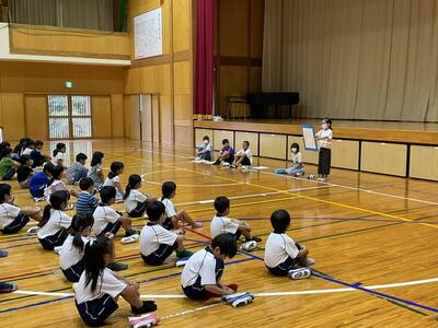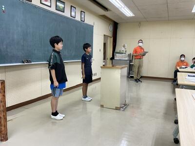 体験発表では、代表の児童が、「今回の宿泊学習では、特に友愛・協同を高めることができたと思います。登山では、お互いに励まし合いました。部屋の片付けなどでは、仲間と共に協力し合いました。」「今回学んだことを、これからの学校生活でいかしていきたいです。」と感想をしっかりと話しました。