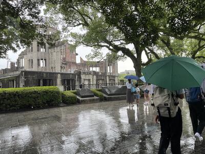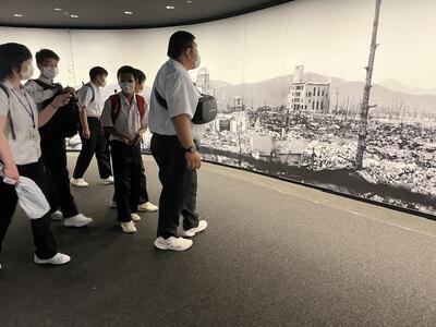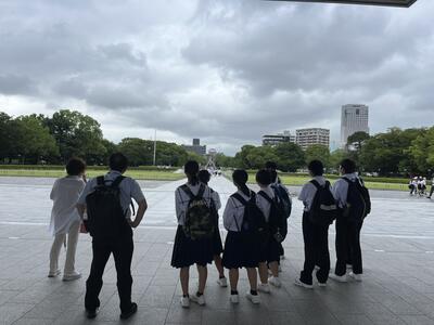事前学習で原爆のことについて勉強してきました。それらのことを思い出しながら、これから班別に資料館を見てまわり理解を深めてきます。