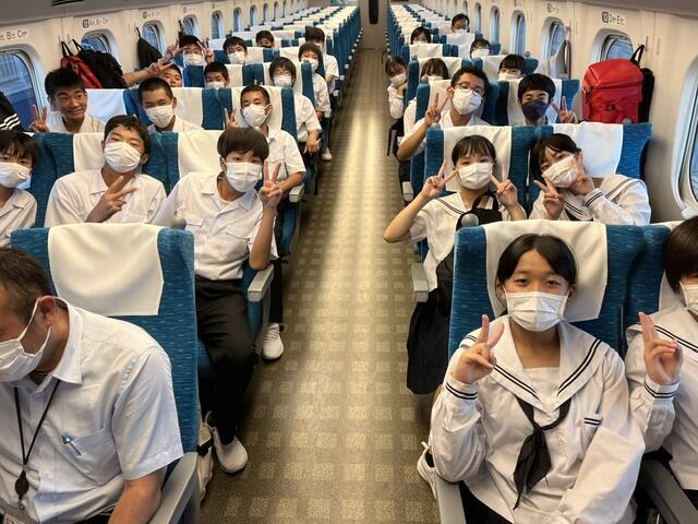 新幹線にスムーズに乗車できるよう、事前学習で「新幹線の乗り方」の予習を行ってきました。予習の成果が見事に発揮されました。座席の奥の方の人を先頭に、スムーズな乗車となりました。