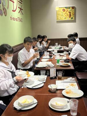 お腹もいっぱいになり、朝も早かったので、少し眠たいモードの中学生です。