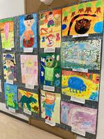 スーパーやまさの「東郷学園・坪谷小 牧水通り」では、児童生徒の作品を展示しています。今回、「牧水の里の作品展」で展示された小学部の作品を展示しました。「牧水の里の作品展」を見逃した方も、もう一度ご覧になりたい方も、お立ち寄りの際は作品をぜひご覧ください。