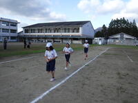 2校時と3校時の間の業間の時間に、運動場を5分間走ります。練習を積み重ねることで、昨年度の自分の記録を体力向上につなげていきたいです。