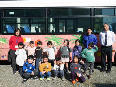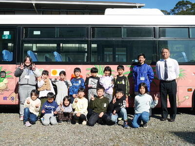 12月9日(金)に、1・2年生を対象にバスの乗り方教室が開催されました。ポケットモンスターのナッシーが描かれた宮交バスに子どもたちは大興奮。県北に1台しかない貴重なバスが東郷学園にやってきました。