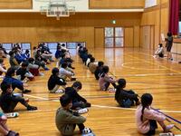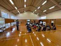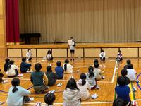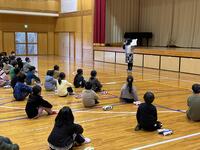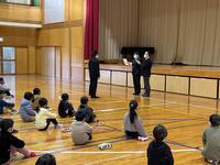 鑑賞教室では、沖縄県や熊本県、徳島県、青森県などの民謡を演奏してくださいました。その中で、阿波踊りの演奏に合わせて踊ったり、ソーラン節の演奏に合わせて5年生全員が踊ったりするなど、とても楽しい演奏会となりました。また、児童生徒や教員の代表者が三味線や太鼓の演奏にチャレンジしました。ソーラン節を演奏したのですが、チャレンジした児童生徒はとても楽しそうに演奏していました。また、毎年運動会で踊る「東郷音頭」を演奏していただき、児童生徒も曲にあわせて踊っていました。