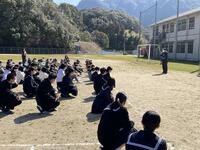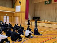 まず、校長先生からあいさつについて話がありました。「一年間を通して、みなさんのあいさつはとてもよかったと思います。特に、中学部のみなさんのあいさつがとても良かったです。これからは、地域の方にも、相手に伝わるように大きな声であいさつしましょう。」また、卒業について、「9年生の卒業が近づいてきています。みなさんで、9年生への感謝の気持ちを込めて送り出しましょう。」と話されました。